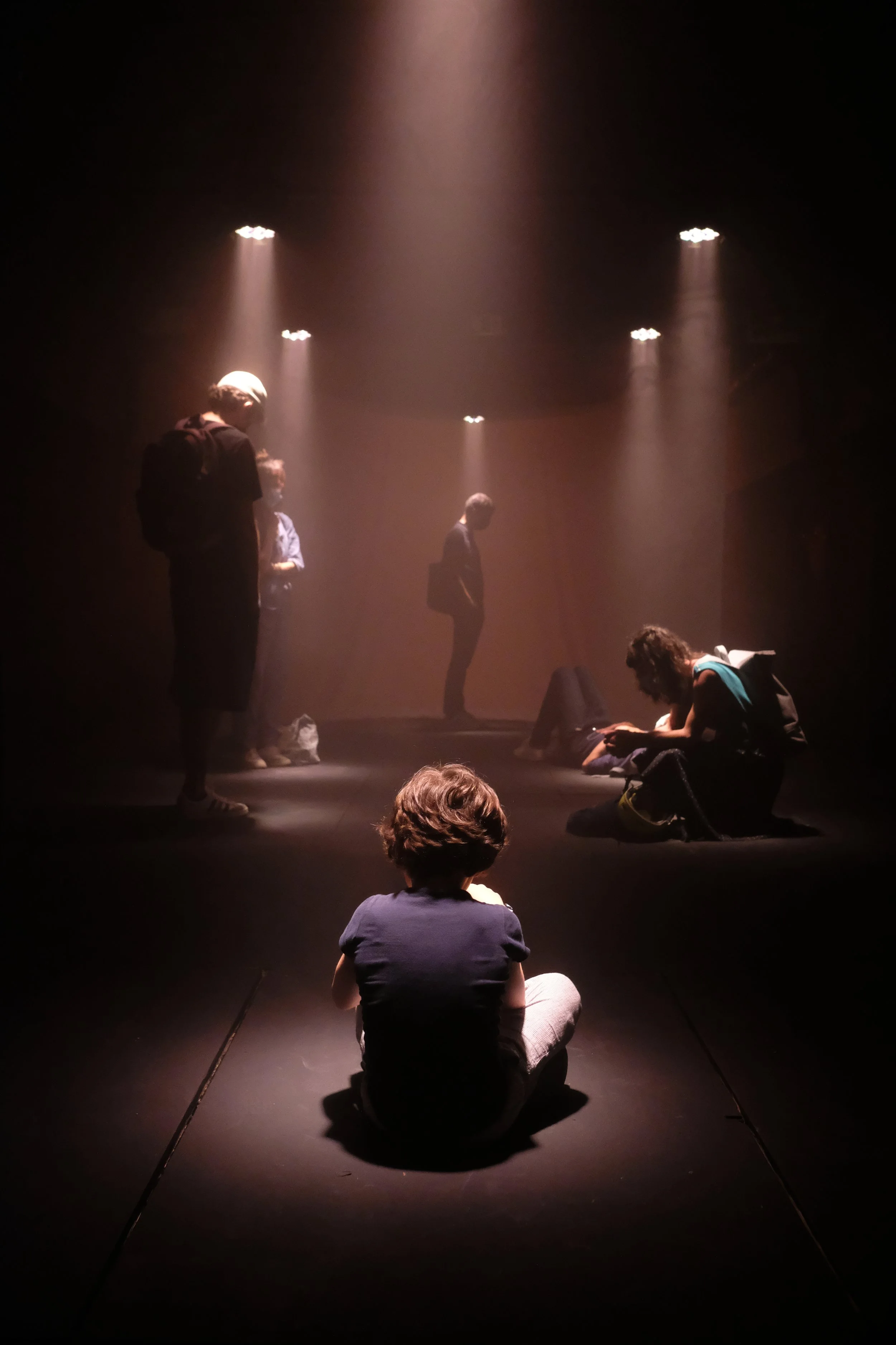 Pure infra bass frequencies are designed to shake specific body parts (ankles, knees, hips, thorax, head, etc…) as a slowly evolving slight massage. Each of these pures sines being transformed into a color frequency that shrouds the installation’s space.